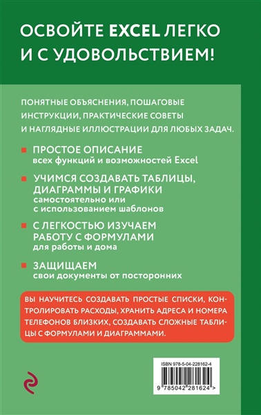 Это книга для тех, кто хочет легко освоить Excel с нуля. Вы научитесь вводить данные, делать простые расчеты и строить таблицы. Книга покажет, как пользоваться формулами, создавать диаграммы и решать повседневные задачи для дома и работы.