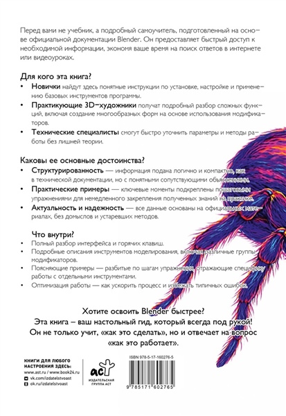Полезной эту книгу найдут и те, кто уже знаком с основами Blender и ищет детализированную справочную информацию (художники и технические специалисты, которым требуется оперативно уточнить параметры или методы работы), и те, кто только знакомится с этой программой, поскольку здесь тщательно расписан как процесс ее установки, так и рабочий интерфейс.