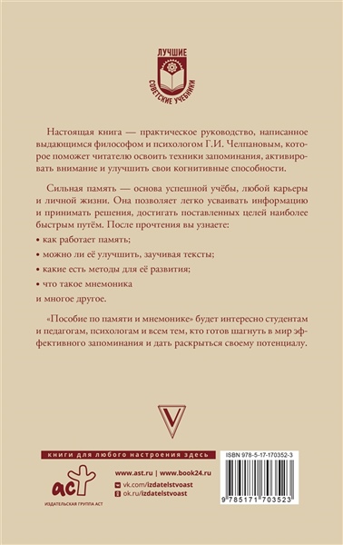 "Пособие по памяти и мнемонике" будет интересно студентам и педагогам, психологам и всем тем, кто готов шагнуть в мир эффективного запоминания и дать раскрыться своему потенциалу.