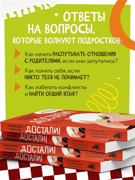 «Слово "достали" на обложке этой книги — хорошее, яркое, продающее. Но на самом деле книга, конечно, не про борьбу с родителями и не про намеренное им противостояние. Она про то, как слушать и слышать друг друга, про то, как учиться разговаривать — без манипуляций, по-взрослому, в границах. И про то, что именно это в конечном счете и работает — и с родителями, и со всеми остальными людьми». — Акимова Елена Игоревна, директор по контенту медиа «Мел»