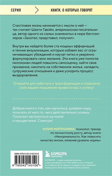 Счастливая жизнь начинается с мысли — так считает Шакти Гавэйн, американская писательница, автор западного бестселлера «Захотел, представил, получил». В книге она предлагает более 100 мощных аффирмаций и техник визуализации, которые избавят вас от ограничивающих убеждений и научат четко и уверенно формулировать свои желания. Эта книга уже помогла тысячам последователей Гавейн повысить самооценку, а еще: - найти свое призвание; - накопить на собственное жилье; - наладить супружеские отношения; - преодолеть серьезные кризисы; - начать путешествовать по всему миру.