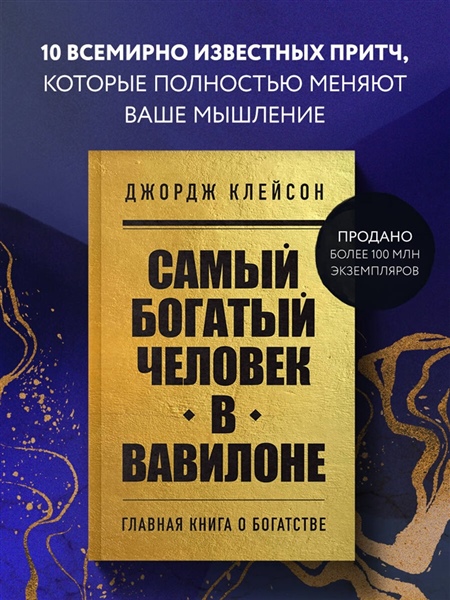 10 всемирно известных притч, которые полностью меняют ваше мышление. Оригинальная версия главной книги о богатстве теперь в самом полном и благозвучном переводе. Все, что было написано о накоплении капитала после «Самого богатого человека в Вавилоне», лишь повторяет и развивает идеи Джона Клейсона, но принципиально нового не добавляет. Роберт Киосаки, Наполеон Хилл, Бодо Шефер — все они черпали мудрость из этого бестселлера. Книга переведена на 32 языка и издана в 56 странах мира. Продана тиражом больше 100 миллионов экземпляров (точный подсчет затруднен из-за невероятного количества переизданий). Если вы ищете одну, самую полезную книгу о богатстве, это без сомнения «Самый богатый человек в Вавилоне». В ней автор с помощью увлекательных историй объясняет, как: • безболезненно избавиться от долгов, во много раз превышающих ежемесячный доход; • скопить первичный капитал, который ляжет в основу будущего благосостояния; • перестать быть рабом денег и заставить их работать на себя; • заслужить уважение и глубочайшее почтение окружающих.