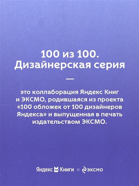 «100 из 100. Дизайнерская серия» — это коллаборация между «ЭКСМО» и Яндекс.Книги, в рамках которой дизайнеры предлагают свое уникальное видение литературных произведений.