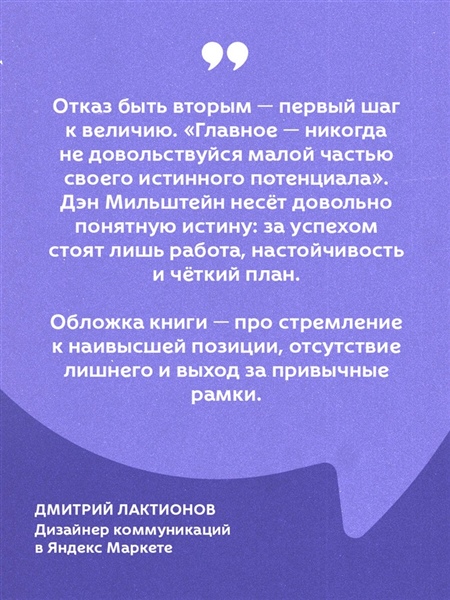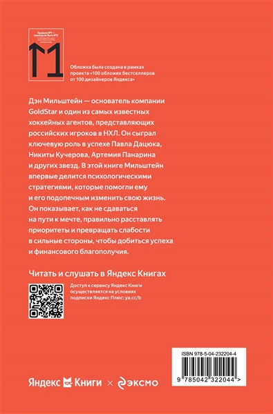 Дэн Мильштейн — основатель компании GoldStar и один из самых известных хоккейных агентов, представляющих российских игроков в НХЛ. Он сыграл ключевую роль в успехе Павла Дацюка, Никиты Кучерова, Артемия Панарина и других звезд. В этой книге Мильштейн впервые делится психологическими стратегиями, которые помогли ему и его подопечным изменить свою жизнь. Он показывает, как не сдаваться на пути к мечте, правильно расставлять приоритеты и превращать слабости в сильные стороны, чтобы добиться успеха и финансового благополучия.