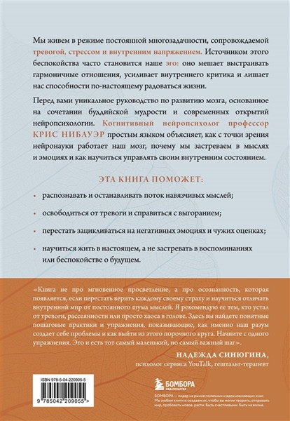 Перед вами уникальное руководство по развитию мозга, основанное на сочетании буддийской мудрости и современных открытий нейропсихологии. Когнитивный нейропсихолог, профессор Крис Нибауэр простым языком объясняет, как с точки зрения нейронауки работает наш мозг, почему мы застреваем в мыслях и эмоциях и как научиться управлять своим внутренним состоянием.