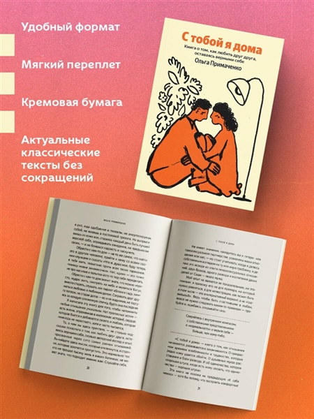 В своей книге Ольга Примаченко говорит о том, как любить, оставаясь верными себе, — согревать друг друга теплом, не сгорая дотла. Эта книга обнимет одиноких, утешит расставшихся и поможет разобраться тем, кто запутался в своих чувствах. А всем, кто влюблен и счастлив, еще раз напомнит, как это важно — вместе создавать дом, о котором всегда мечтали.