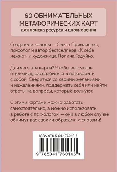 С этими картами можно работать самостоятельно, а можно использовать в работе с психологом — они в любом случае обнимут вас своими образами и словами!