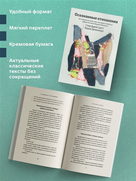 «Осознанные отношения» — книга для тех, кто чувствует себя одиноким в отношениях. Это практикум для партнеров, которые любят друг друга, но уже не ощущают близости, а их страсть сменилась на раздражение, рутину, отсутствие внимания или апатию. ⠀ Стив Джей Скотт, коуч по личностному развитию, и Барри Девенпорт, писатель и коуч, рассказывают о том, как, постепенно внедряя 25 привычек, можно наладить глубокую привязанность в паре — избегать разногласий и реагировать на потребности друг друга с большей любовью, сочувствием и осознанностью, создать бережные отношения, наполненные теплотой и заботой. ⠀ Информация, представленная в этой книге, основана на опыте экспертов по отношениям и осознанности, личном опыте авторов и научных исследованиях. «100 из 100. Дизайнерская серия» — это коллаборация между «ЭКСМО» и Яндекс.Книги, в рамках которой дизайнеры предлагают свое уникальное видение литературных произведений. Многогранность российской и зарубежной современной прозы подчеркивается разнообразием художественных приемов в оформлении. Удобный формат. Мягкий переплет. Кремовая бумага.