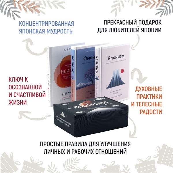 Бестселлер «Икигай» (продано более 65 тыс. экз.) в комплекте двумя книгами Эрин Ниими Лонгхёрст, блогера, открывшего для себя силу восточной мудрости, — отличный подарок для каждого, кто хочет упорядочить хаос в своей жизни. Издания содержат множество иллюстраций и точные описания ценных духовных практик. Авторы бережно учат своих читателей приводить в порядок мысли, замечать красоту окружающего мира и радоваться мелочам. Подойдет всем, кому пришелся по душе «Хюгге».