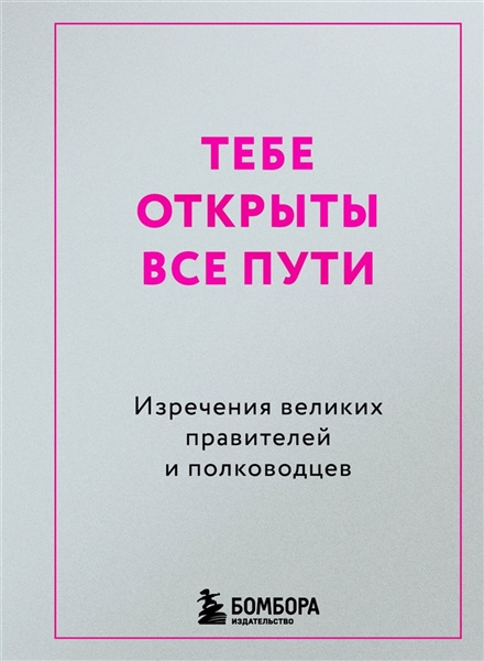 Сборник объединяет изречения тех, кто умел принимать решения, усмирять хаос и вести за собой, когда надежда казалась слабее страха. Здесь собраны мысли правителей, политиков и полководцев разных эпох от Древнего Китая до наших дней. Она напоминает: пути открыты тем, кто выбирает идти. ЦИТАТЫ: «У вас есть власть над своим разумом, а не над внешними событиями. Осознайте это, и вы обретете силу». — Марк Аврелий «Без добродетели нет ни славы, ни чести». — Александр Суворов «Свобода ничего не стоит, если она не включает свободу ошибаться». — Махатма Ганди