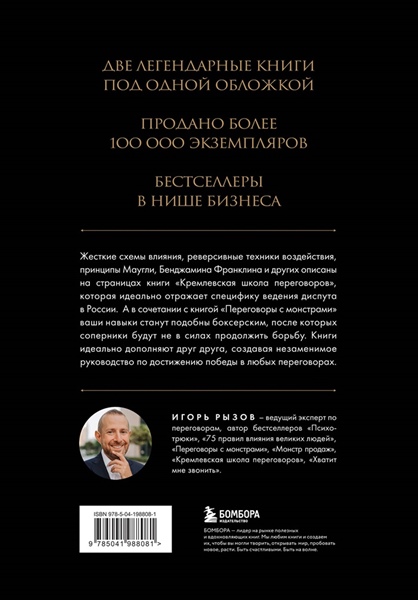 Игорь Рызов — ведущий эксперт по переговорам, автор бестселлеров «Психотрюки», «75 правил влияния великих людей», «Переговоры с монстрами», «Монстр продаж», «Кремлевская школа переговоров», «Хватит мне звонить».