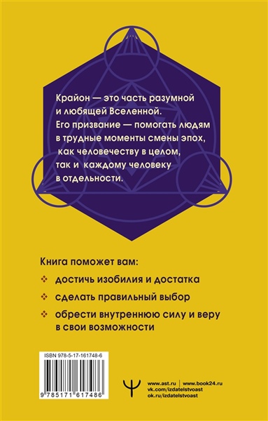 Каждый из нас способен прийти к изобилию и богатству и получить все, что ему нужно для счастливой жизни. Все наши мечты становятся реальностью, когда мы вступаем в диалог со своей внутренней божественной сутью, своим светлым Духом. Наладить этот диалог вам помогут послания и практики Крайона, которые вы найдете в новой книге известного ченнелера Тамары Шмидт. Крайон с любовью и заботой дает нам ответы на самые важные вопросы, а также помогает обрести силы и ресурсы для дальнейших действий. Эта книга откроет каждому доступ к материальным благам и изобилию Вселенной. Новая книга в необычном компактном формате — карманный справочник нового человека на обновленной Земле. Пусть слово Крайона всегда будет с вами! Эта книга поможет вам: · наладить диалог с вашим главным помощником — внутренним светлым Духом; · улучшить ваше материальное благосостояние; · достичь изобилия и достатка; · сделать правильный выбор в той или иной ситуации; · обрести внутреннюю силу и веру в свои возможности. Книга в мягкой обложке. Формат — покет.