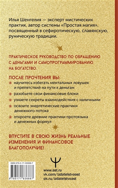 Практическое руководство по обращению с деньгами и самопрограммированию на богатство. Автор предлагает трансформировать свое денежное мышление и перестроить восприятие для того, чтобы достичь материального комфорта и уверенности в завтрашнем дне. Система поможет вам плавно перестроить восприятие и место финансов в вашей жизни, изменить и правильно настроить денежный поток, убрать все препятствия (особенно те, что ставит наш мозг) и внедрить практики привлечения денег. Авторские медитации, открывающие денежный поток, древние формулы протоязыка, ритуалы и магические практики, которые помогают усилить приход денег в вашу жизнь. Впустите в свою жизнь реальные изменения и финансовое благополучие!