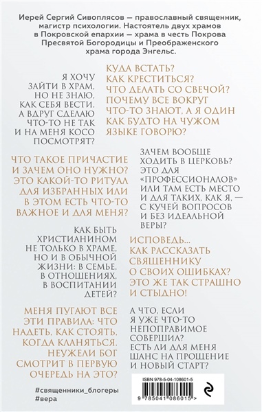 Книга священника Сергия Сивоплясова «А если по-простому?.. Живой разговор о вере, храме и жизни с Богом» — это душевный и искренний разговор с читателем, который только начинает свой путь к вере. Словно бережный собеседник, автор простым языком объясняет: как переступить порог храма, зачем нужно креститься, что означают главные Таинства — Исповедь и Причастие. Вы найдете практические советы, основанные на личном опыте. Книга станет для каждого надежным спутником в самых разных ситуациях: от освоения молитвы и поста до вопросов о семейной жизни. Если известный труд архимандрита Иоанна (Крестьянкина) «Опыт построения исповеди» можно назвать подробной и мудрой картой для глубокого покаянного делания, то книга отца Сергия — это добрый и ясный указатель на самой первой развилке дороги. Она не заменяет, а предваряет и подготавливает: мягко берет за руку, отвечает на самые простые вопросы ищущего человека и помогает сделать первые, самые важные шаги без страха и формализма. Ее простой язык, уважение к исканиям читателя и ориентация на повседневность делают эту книгу идеальным началом пути и надежным компасом для каждого, кто хочет найти дорогу к храму. В книге вы найдете: · Понятные советы по входу в храм и участию в службах. · Объяснения смысла Таинств, молитв и обрядов. · Четкие ориентиры в вопросах семьи, воспитания детей и современной этики. · Поддержку в том, как принимать жизнь во всех ее проявлениях через призму веры и молитвы.