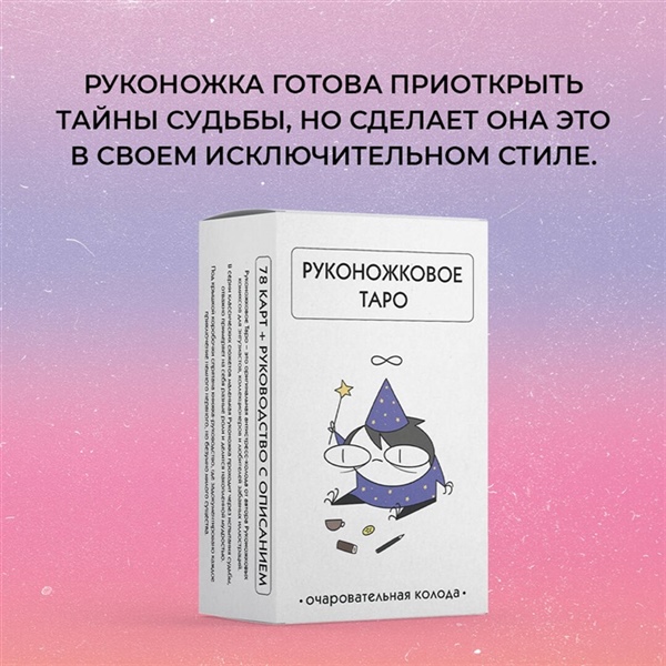 Руконожковое Таро — это оригинальная антистресс-колода от автора Руконожковых комиксов для энтузиастов, коллекционеров и любителей забавных иллюстраций.