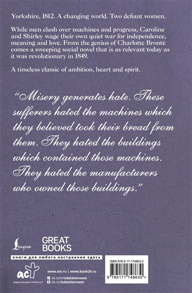"Шерли" — один из самых зрелых и социально значимых романов Шарлотты Бронте, действие которого разворачивается в Англии начала XIX века, на фоне промышленного кризиса и луддитских волнений. В центре повествования — две молодые женщины: скромная и задумчивая Каролина Хелстоун и независимая, волевая Шерли Килдар, наследница крупного состояния. Их жизни связаны с братьями Мур — амбициозным фабрикантом Робертом и его тихим, образованным братом Луи. Взаимодействие персонажей служит основой для осмысления социальных перемен, моральных дилемм и положения женщины в английском обществе XIX века. Текст романа представлен в оригинале, без адаптации и сокращений.