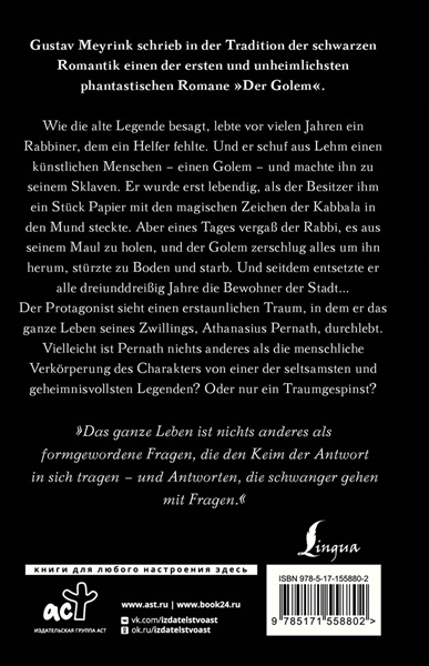 Книга издана в неадаптированной версии. Наслаждайтесь мистическим романом Густава Майринка в оригинале!