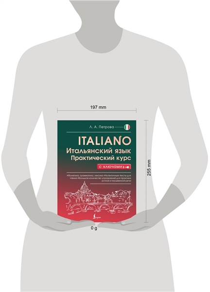 Людмила Александровна Петрова – преподаватель с огромным опытом работы в ведущих вузах страны; крупнейший итальянист; профессиональный переводчик; автор разнообразных учебных книг и пособий. В пособии представлен практический курс итальянского, который охватывает фонетический, грамматический и лексический разделы языка. Первая часть – Вводно-фонетический курс, который содержит сведения о буквах, звуках и правилах чтения. Вторая часть – Основной курс, состоящий из 11 уроков. В каждом уроке находятся материалы для освоения грамматики и лексики итальянского языка, а также практические упражнения для закрепления пройденного материала. К некоторым заданиям даны ключи в конце издания. В третьей части представлены комедии-диалоги, работа с текстами не только способствует развитию навыков чтения, но и помогает улучшить письменную и устную речь. Издание примечательно использованием оригинальных текстов итальянской комедии дель арте (комедии масок). Пособие разработано для читателей, начинающих и имеющих базовые знания итальянского. Самоучитель поможет вам достичь уровня B1.