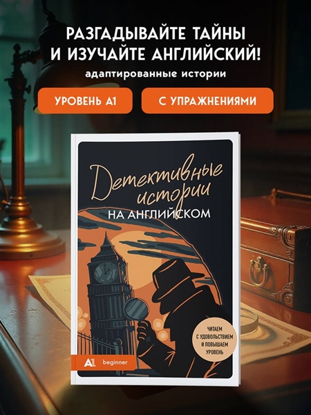 «Детективные истории на английском» — это сборник адаптированных рассказов для уровня A1–A2. В каждом тексте — небольшая загадка с интригой, уликами и неожиданной развязкой. Истории читаются легко, а язык запоминается через сюжет — понятно и естественно.