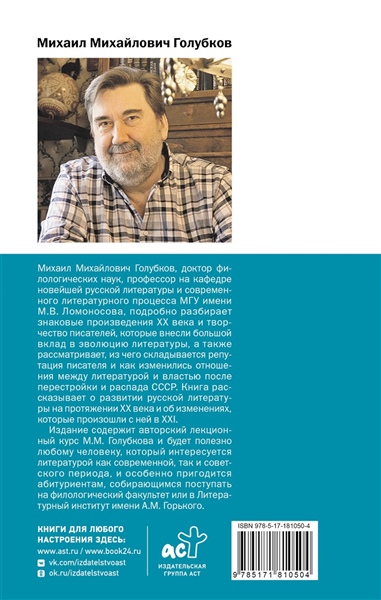 Книга рассказывает о развитии русской литературы на протяжении ХХ века и об изменениях, которые произошли с ней в XXI. Михаил Михайлович Голубков, доктор филологических наук, профессор на кафедре новейшей русской литературы и современного литературного процесса МГУ имени М.В. Ломоносова, подробно разбирает знаковые произведения ХХ века и творчество писателей, которые внесли большой вклад в эволюцию литературы, а также рассматривает, из чего складывается репутация писателя и как изменились отношения между литературой и властью после перестройки и распада СССР.