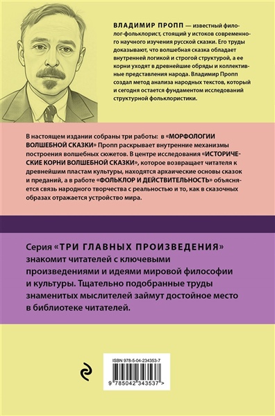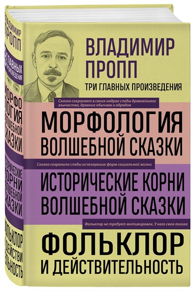 «Владимир Пропп. Морфология волшебной сказки. Исторические корни волшебной сказки. Фольклор и действительность» — это сборник ключевых произведений самого известного отечественного филолога-фольклориста Владимира Проппа, который посвятил свои исследования поиску ответов как раз на этот, казалось бы, простой вопрос. Чтобы на него ответить, Пропп предлагает разобрать сюжеты сказок на их составляющие — функции — и посмотреть, из чего именно складывались устоявшиеся и всем знакомые сюжеты волшебных сказок.
