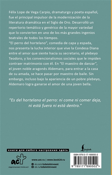 Великий испанский драматург Лопе де Вега за свою жизнь написал несколько тысяч пьес, из которых до нас дошла примерно четверть. Комедии, полные жизни, юмора и любви, по-прежнему актуальны и продолжают покорять читателей и зрителей.