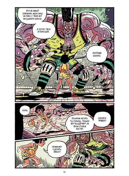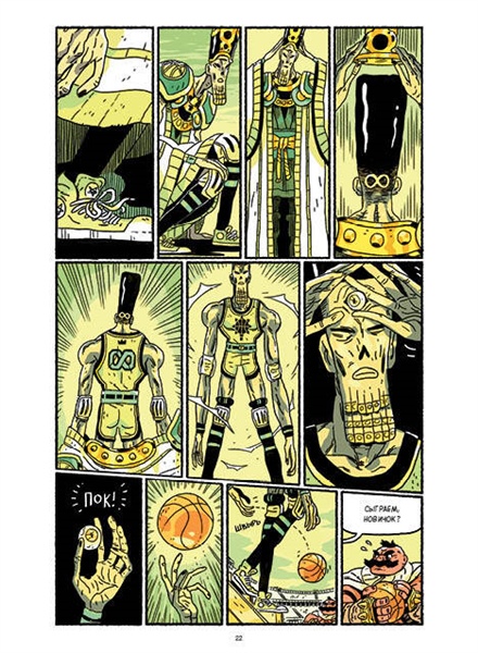 Юная волшебница и её мускулистый друг отправляются за сокровищами в гробницу мумии... Чтобы разбогатеть, им придётся подчиниться древнему закону и обыграть царя мёртвых в баскетбол! Но будет ли их оппонент играть по правилам? Ведь иначе нашим героям не покинуть эти жуткие края... Вас ждут захватывающие приключения, искромётный юмор и трогательная дружба. Кто знал, что колдовство так здорово сочетается со спортом? Встречайте инди-комикс в духе манги 1960-х, Майка Миньолы, «Индианы Джонса» и «Времени приключений».