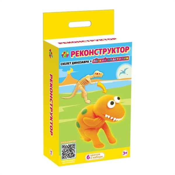 РЕКОНСТРУКТОР НАБОР "ТИРАНОЗАВР" СКЕЛЕТ ДИНОЗАВРА+ЛЁГКИЙ ПЛАСТИЛИН АРТ.Т24213