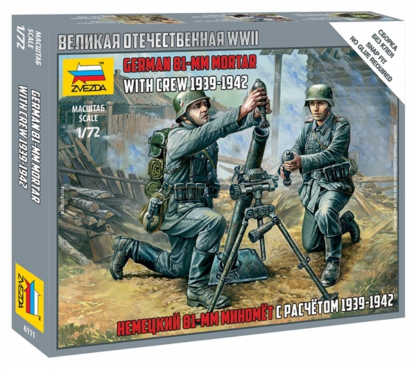 СБОРНАЯ МОДЕЛЬ НЕМЕЦКИЙ 81-ММ МИНОМЁТ С РАСЧЁТОМ (1939-1942) (МАСШТАБ 1:72) *ЗВЕЗДА* АРТ.6111