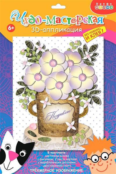НАБОР Д/АППЛИКАЦИИ 3Д БЕЛЫЕ ЦВЕТЫ (6+) ДРОФА АРТ.4200