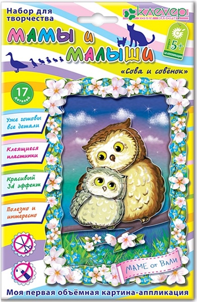 НАБОР Д/АППЛИКАЦИИ 3D СОВА И СОВЕНОК *КЛЕВЕР* АРТ. АБ 19-001