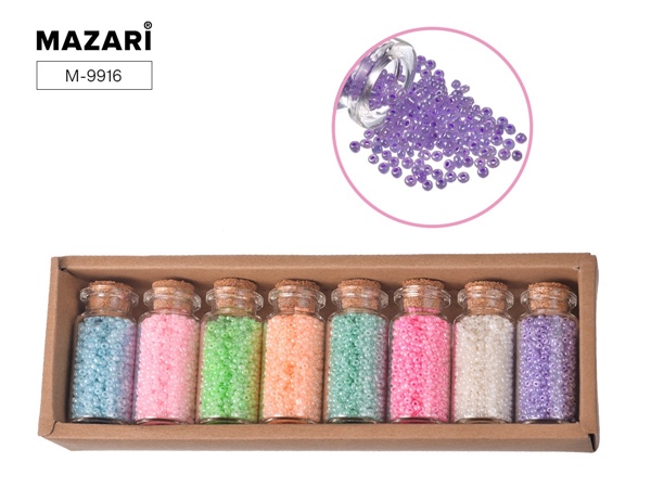 НАБОР БИСЕРА №4 (8ЦВ*15,5Г) СТЕКЛЯН КОЛБА/КАРТОНН КОРОБКА MAZARI M-9916 (8591)