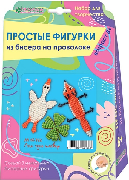 НАБОР Д/ТВОРЧ ФИГУРКИ ИЗ БИСЕРА НА ПРОВОЛОКЕ ЛИС,ГУСЬ,КЛЕВЕР (3 ФИГУРКИ)*КЛЕВЕР* АРТ.АА 48-722 (0641