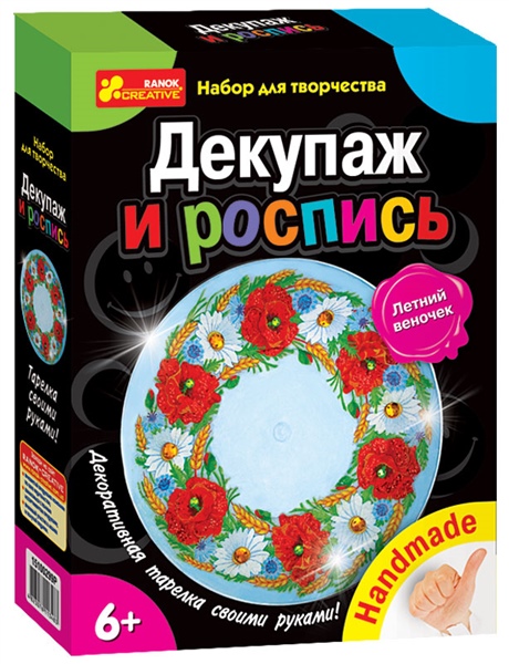 НАБОР Д/ТВОРЧ ДЕКУПАЖ И РОСПИСЬ ЛЕТНИЙ ВЕНОЧЕК (ТАРЕЛОЧКА) "РАНОК" АРТ.15100299Р (3483)