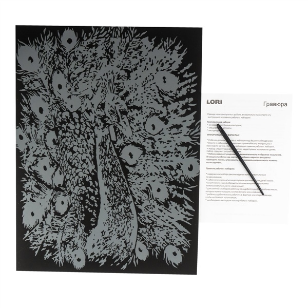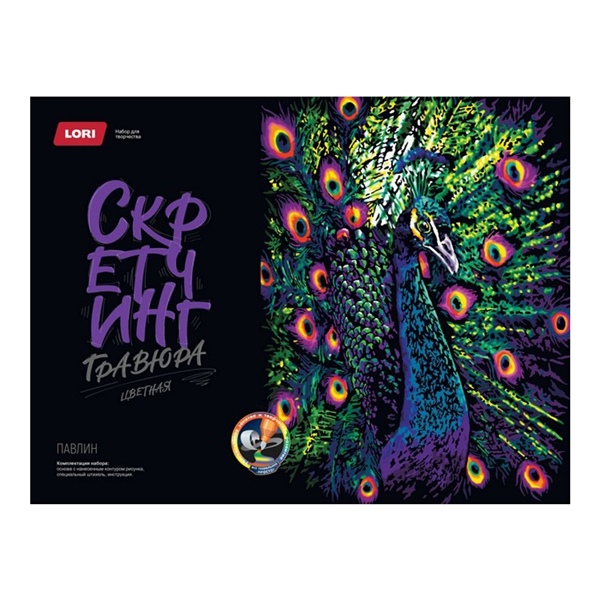 ГРАВЮРА СКРЕТЧИНГ 30*40СМ НЕОНОВЫЕ ЖИВОТНЫЕ "ПАВЛИН" ГР-777