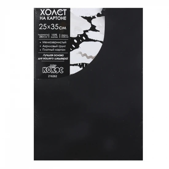 ХОЛСТ НА КАРТОНЕ 25*35СМ ЧЕРНЫЙ (100% ХЛОПОК 280ГР МЕЛКОЕ ЗЕРНО) КОКОС 216262 (4369)