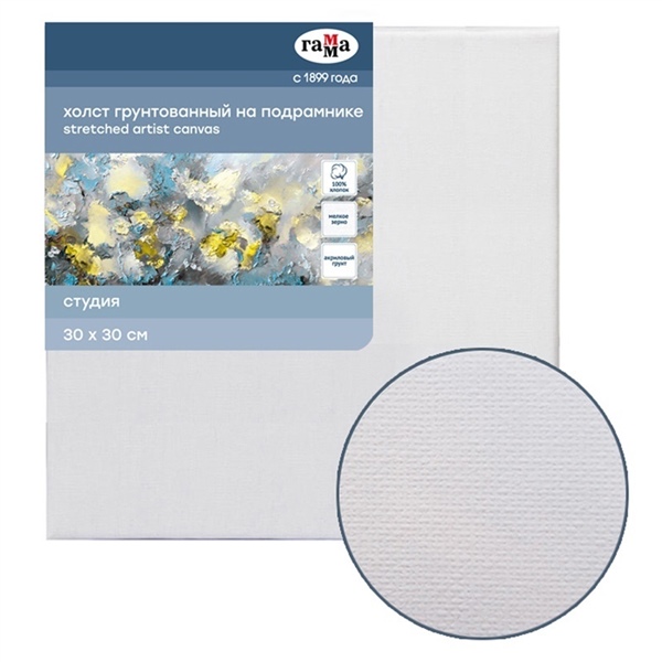 ХОЛСТ НА ПОДРАМНИКЕ ГАММА "СТУДИЯ" 30*30 СМ, 100% ХЛОПОК, МЕЛКОЕ ЗЕРНО АРТ.060220204 (9267)