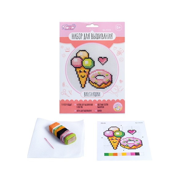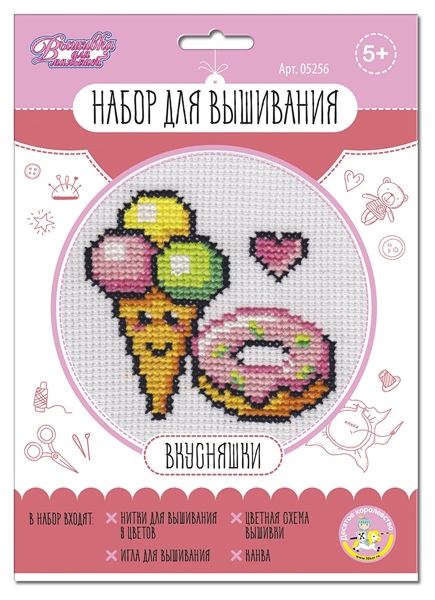 Набор для вышивания «Вкусняшки» создан специально для сладкоежек! Процесс вышивания развивает мелкую моторику, воображение, творческое и логическое мышление. А готовая вышивка станет памятным подарком для друзей и родных.