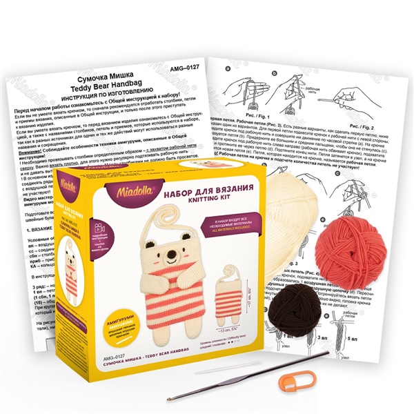 НАБОР ДЛЯ ВЯЗАНИЯ СУМОЧКА МИШКА "MIADOLLA" AMG-0127 (5259)