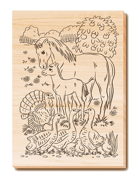 Выжигание по дереву - старинный вид прикладного искусства. Дощечка для выжигания и росписи «На ферме» - это замечательный подарок для любого ребенка, который поможет интересно провести время и реализовать свои творческие способности. Рисунок нанесен специальной краской, которая не выделяет вредные вещества в процессе выжигания.