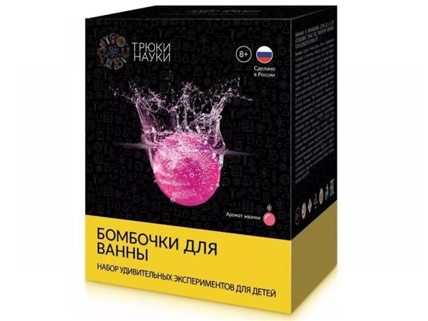 Набор химических экспериментов для детей "Бомбочки для ванны" с ароматом жвачки. Реагентов хватает на две бомбочки.