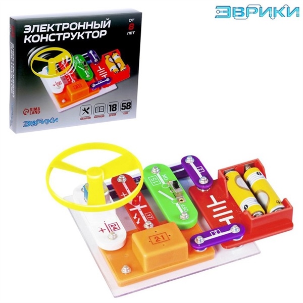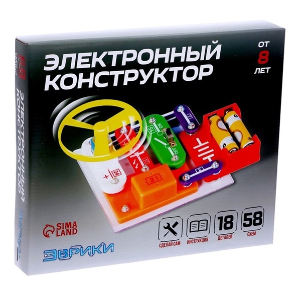КОНСТРУКТОР ЭЛЕКТРОННЫЙ (18 ДЕТ, 58 СХЕМ)"ЭВРИКИ" СИМА-ЛЕНД АРТ.1200830