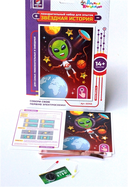 Соберите свою первую электросхему с познавательным набором для опытов и творчества «Звёздная история. Инопланетянин»!