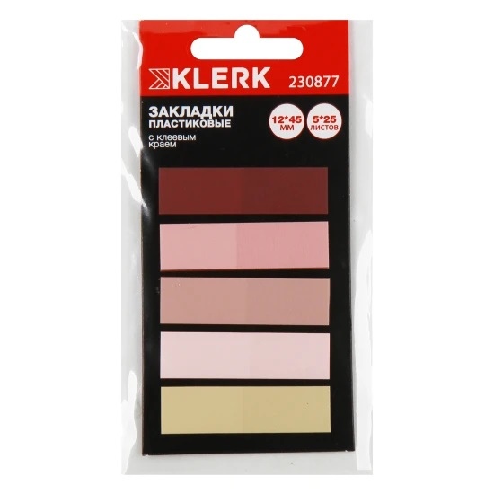 ЗАКЛАДКИ ПЛАСТИК 45*12ММ 5ЦВ*25Л В БЛОКЕ KLERK ПАСТЕЛЬ (С ЛИПКИМ КРАЕМ) 230877