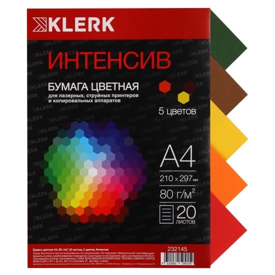 БУМАГА 5 ЦВ 20 Л ИНТЕНСИВ А4 80Г/М KLERK 232145 (4159)