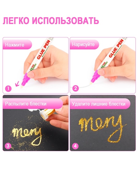 КЛЕЕВАЯ РУЧКА И БЛЁСТКИ 6 ЦВ TWOHANDS /БЛИСТЕР/ 10063 (0063)