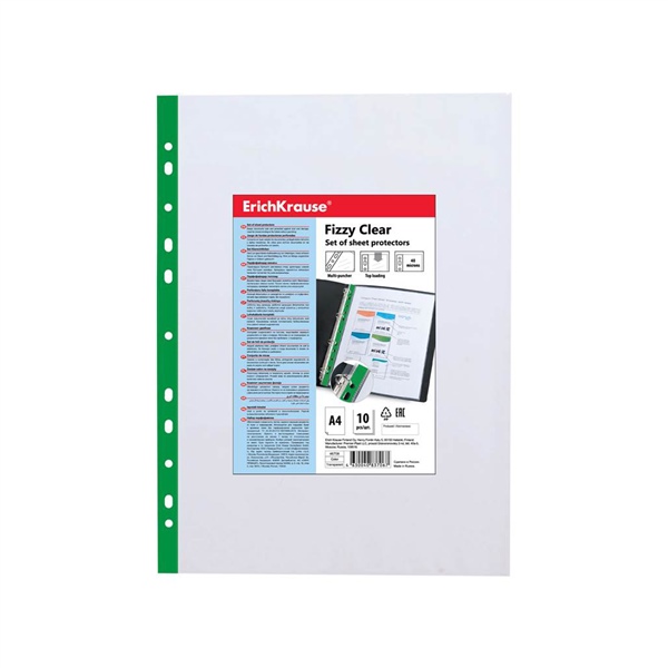 ПАПКА-ФАЙЛ А4 FIZZY CLEAR 40 МКМ ЗЕЛЕН ПОЛОСА (1ШТ=УПАКОВКА 10ШТ) АРТ.ЕК 46708