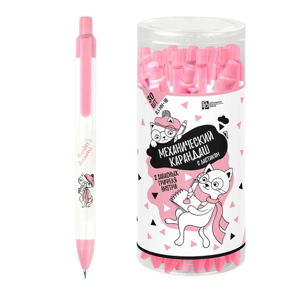 КАРАНДАШ АВТО 0.5ММ ФЕНИКС+ РОЗОВАЯ КОШКА 57853
