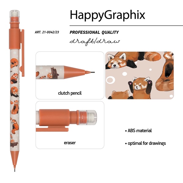 КАРАНДАШ АВТО 0.7ММ С ЛАСТ HAPPYGRAPHIX РЕД ПАНДЫ*BV*21-0042/23 (6450)