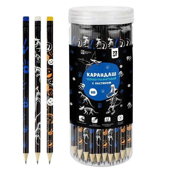 КАРАНДАШ Ч/Г С ЛАСТ ФЕНИКС+ HB ОТПЕЧАТКИ/СМАЙЛИКИ/ДИНОЗАВРЫ В АСС 57943